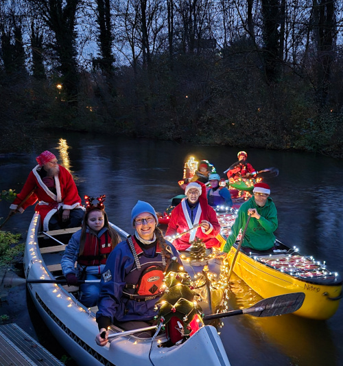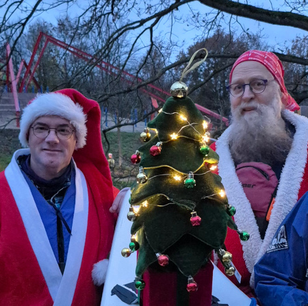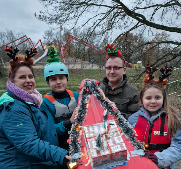 (-wi) Nikolaus-Biker und Weihnachts-Traktoren sind aktuell im Rhein-Kreis wieder unterwegs. Aber auch die Kanuten sorgten erneut für weihnachtliche Stimmung an und auf der Erft. Spaziergänger im Bend freuten sich über die vielen funkelnden Lichter in der Dämmerung und die Aktiven um KCG-Geschäftsführer Jens Reibiger steuerten ihre leuchtenden und blinkenden Weihnachtsboote für gut eine Stunde übers Wasser. Zuerst schlängelte sich der Lichter-Tross oberhalb der